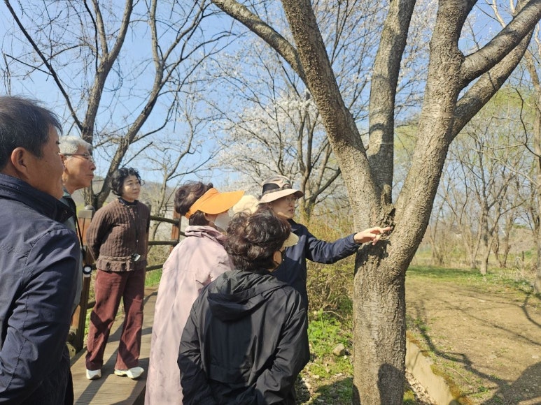 주민들과 함께 계절별 밀원식물을 살피고,